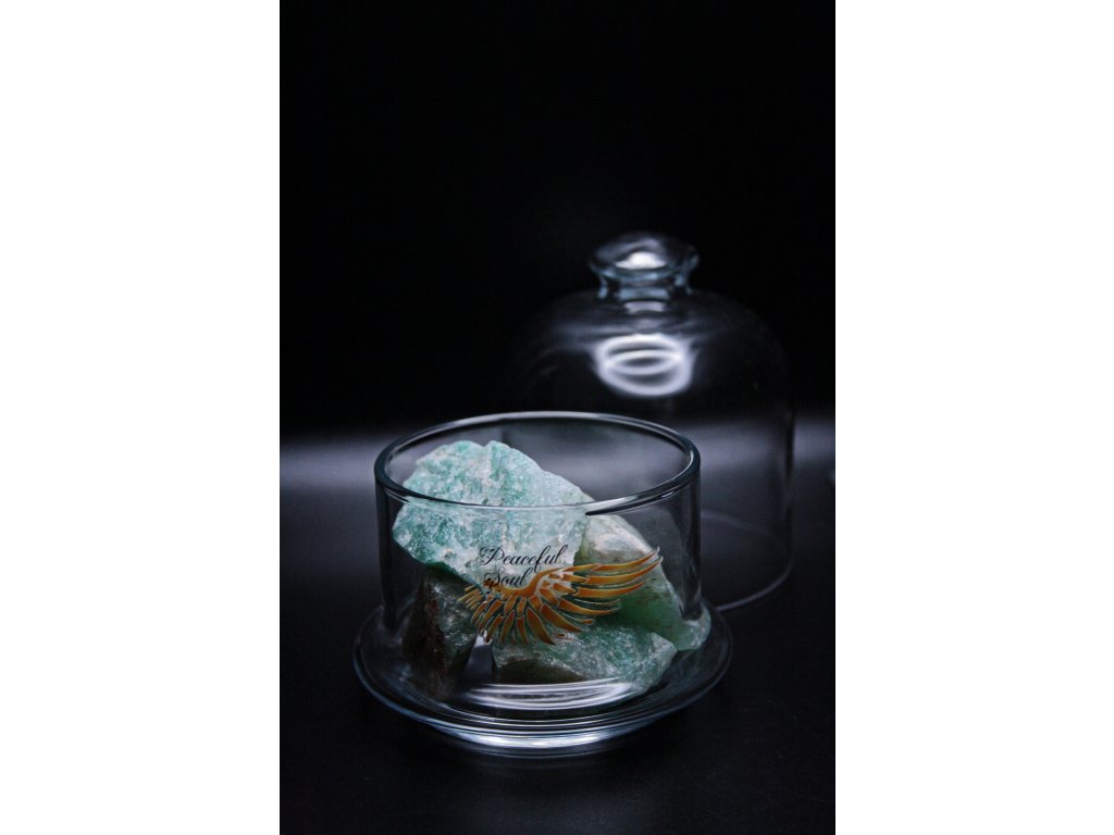 Sklenený difúzor s minerálom avanturín v tónoch tyrkysovej farby. Zabalený v darčekovej krabičke, vhodný ako originálny darček pre Vašich najbližších.