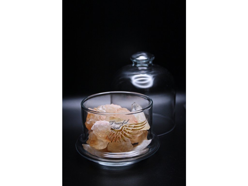Sklenený difúzor s minerálom citrín v tónoch žltej farby. Zabalený v darčekovej krabičke, vhodný ako originálny darček pre Vašich najbližších.